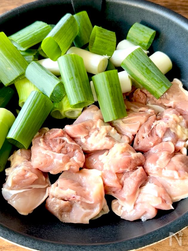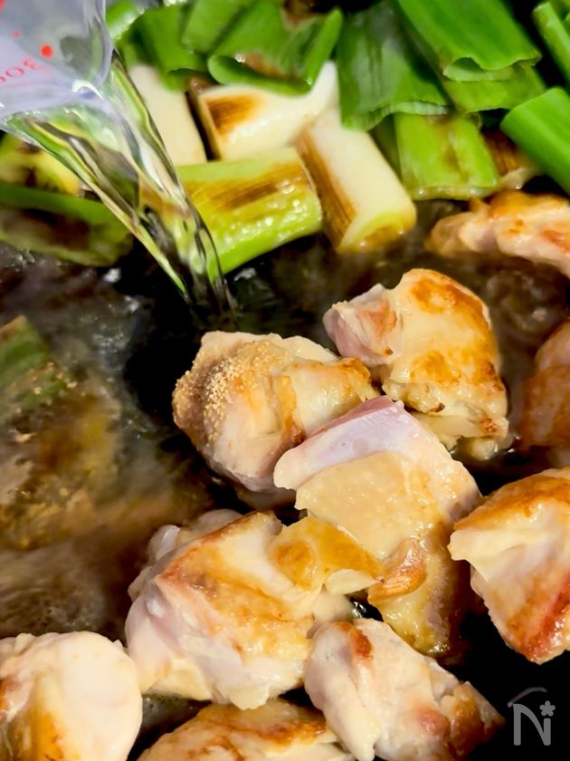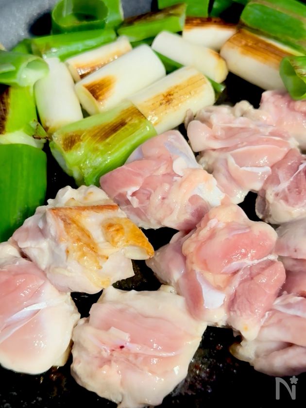 ◎鶏肉と長ねぎは焼き目をつけることで香ばしくなり、風味がぐっと良くなります。