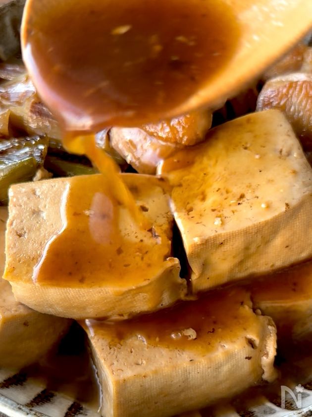 ◎豆腐は煮汁にしっかり浸け、途中で上下を返すと短時間でも味がしみます。