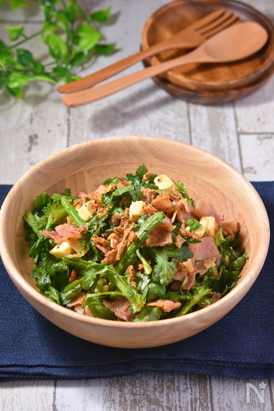 春菊とベーコンのぽん酢ホットサラダ│コクとうま味の簡単サラダ