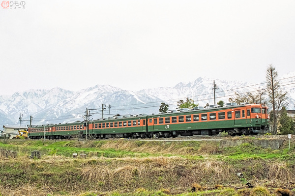 JR大糸線を行く急行「アルプス」。写真はイメージ(画像:写真AC)。