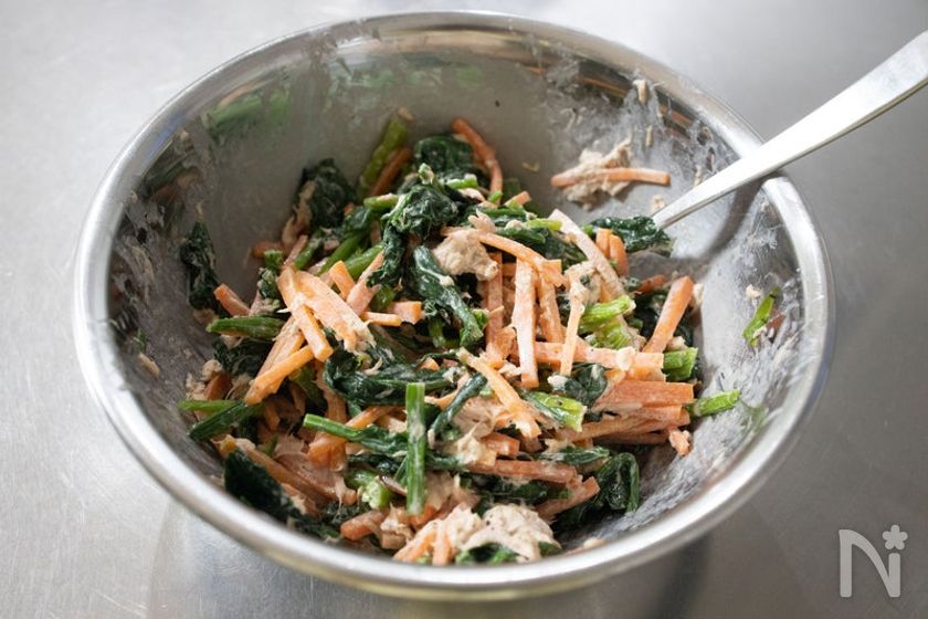 『ほうれん草とにんじんのペッパーツナマヨ和え』作り置きにも☆