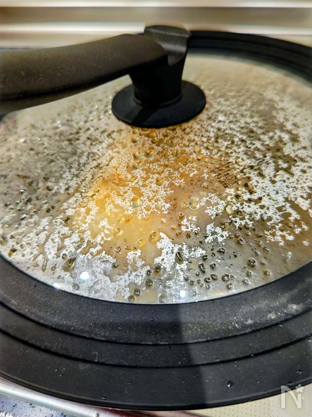 中火で5分加熱し、焼き色がついたら、裏返して蓋をして、