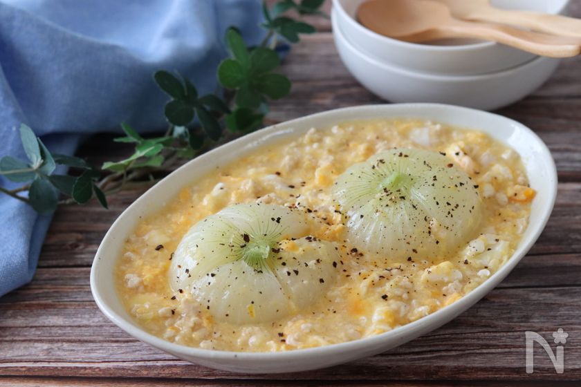 これはたまらん♡まるごと新玉ねぎのふわふわ卵鶏そぼろあんかけ