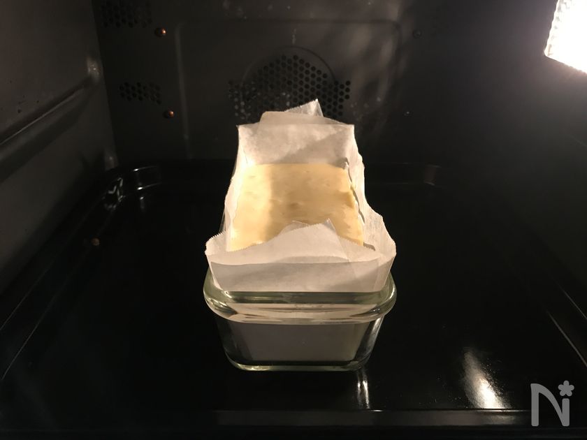 (6) 180度に予熱したオーブンで35〜40分焼きます。焦げそうならアルミホイルをかぶせて焼いて下さい。