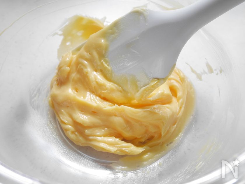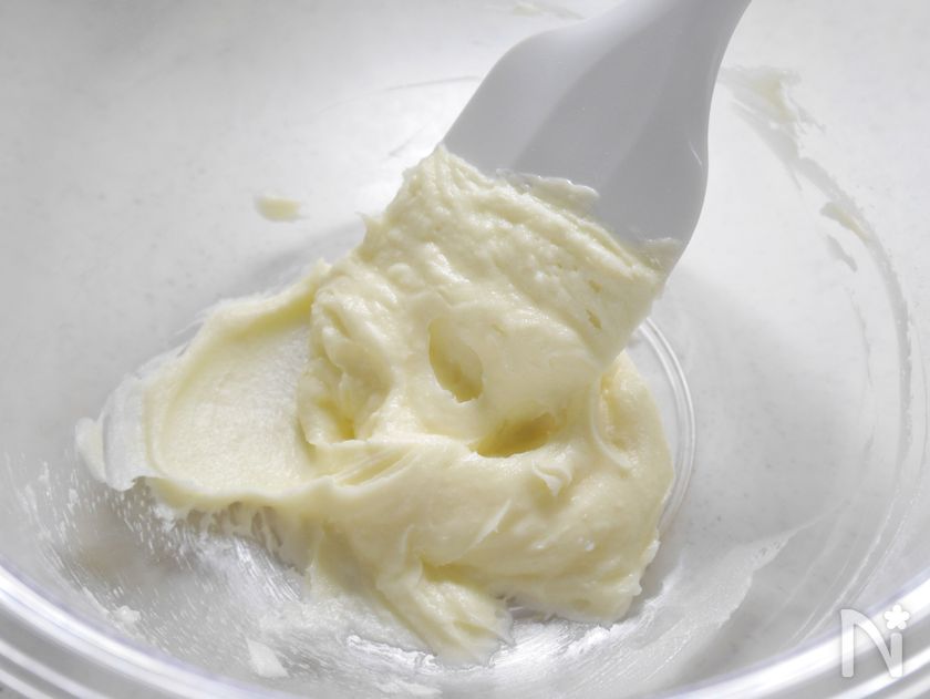 (下準備) ・無塩バターを常温に戻す。(指がすっと入るくらいの柔らかさ)