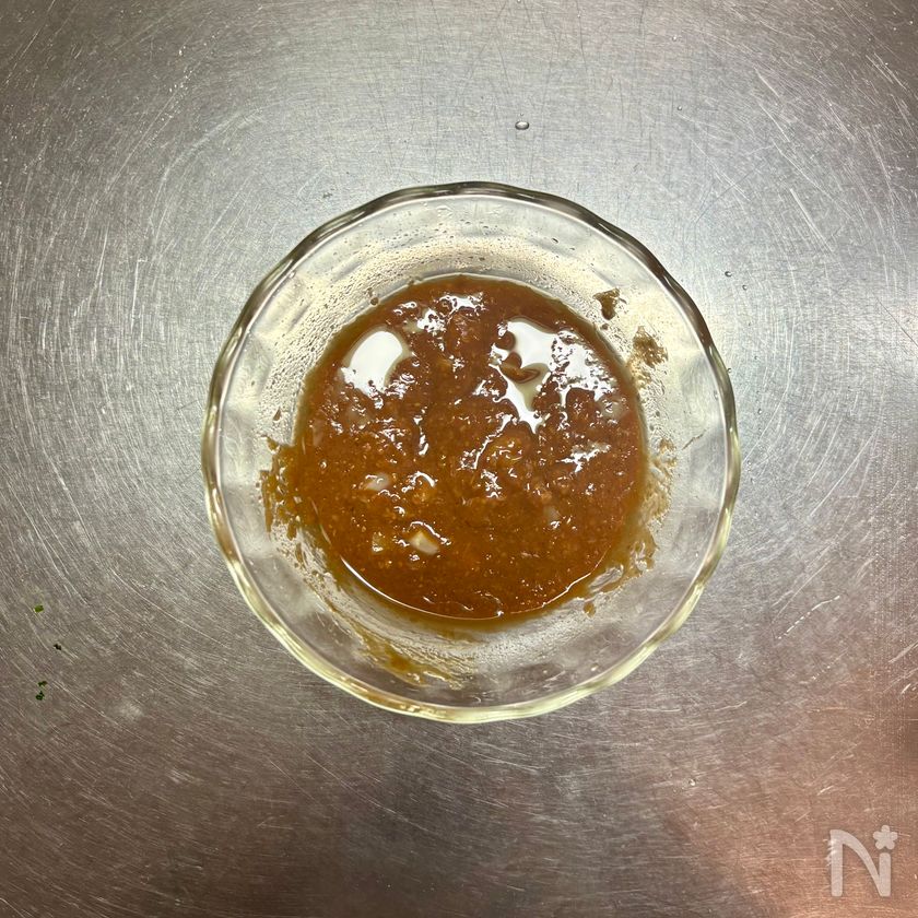 (5) ④の耐熱ボウルに【B】を加え、みそが溶けるまで混ぜる。