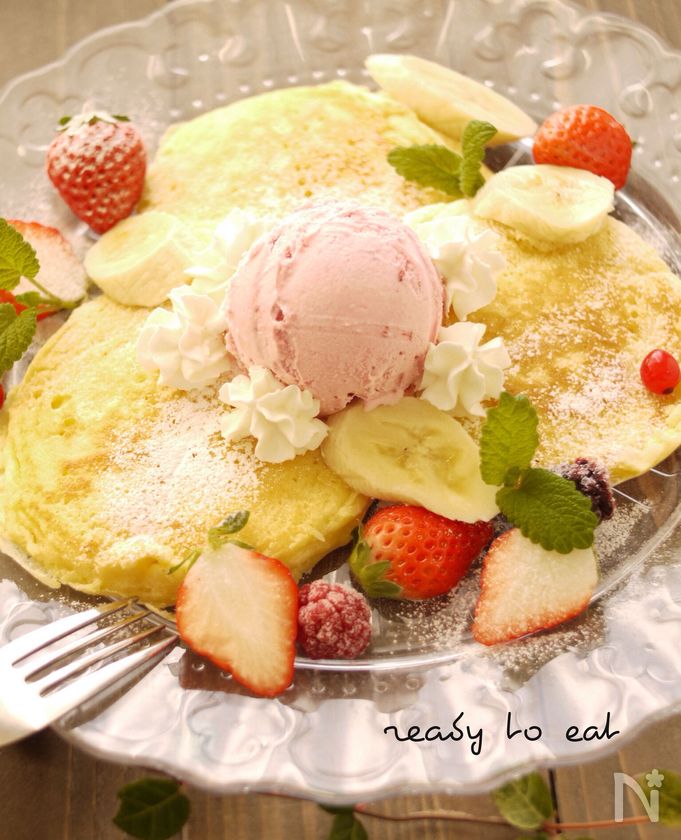 リコッタ気分のスフレパンケーキ*HMとヨーグルトで簡単に♬