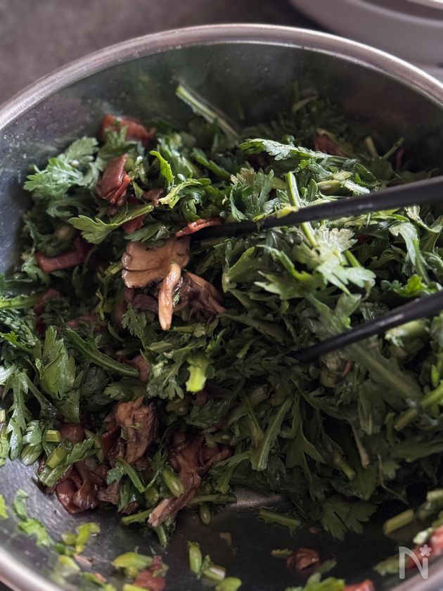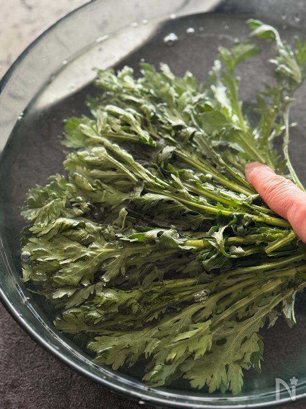 春菊はしっかり水で洗い、水気をよく切ってください。