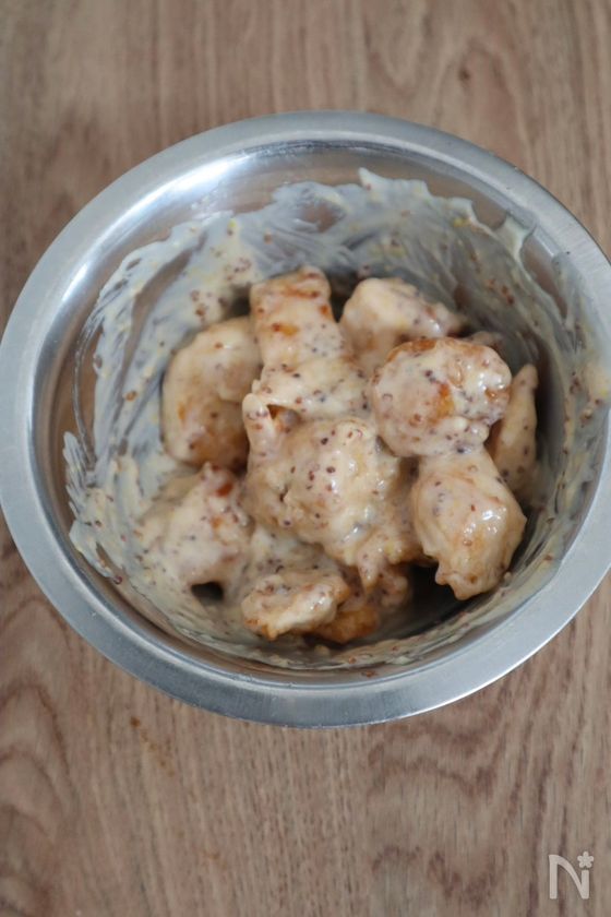 驚くほどしっとり♡鶏むねマヨマスタード和え