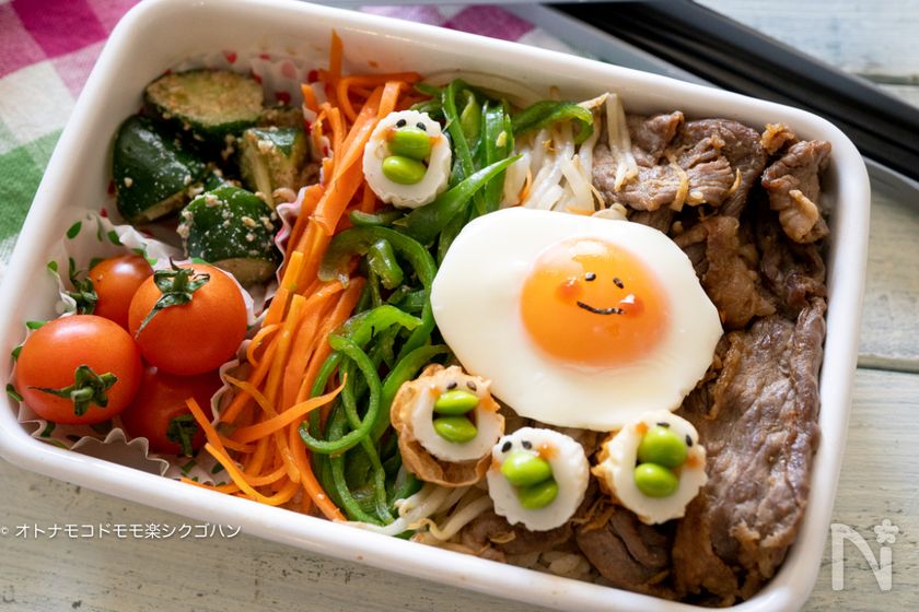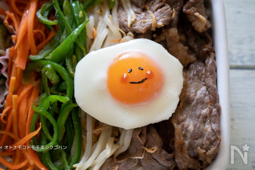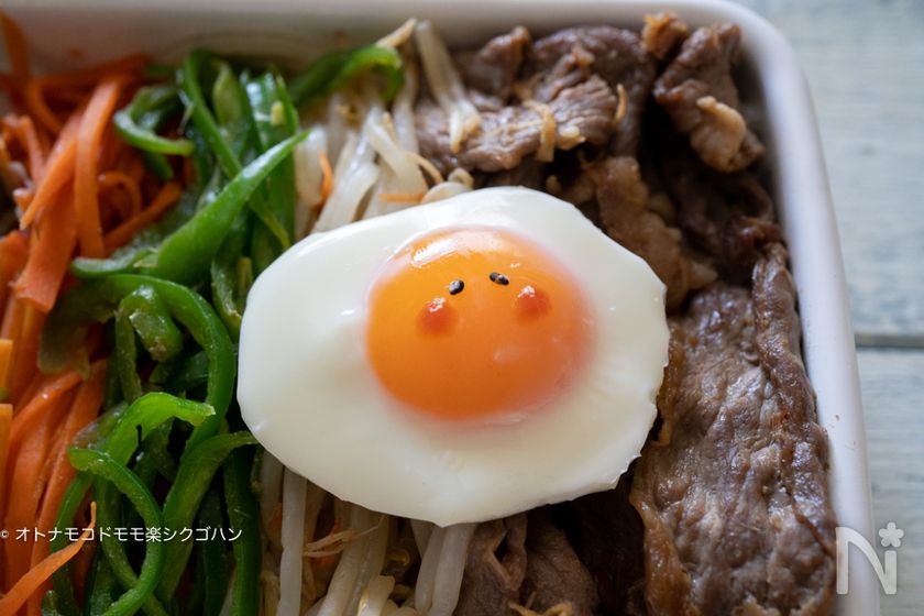 (8) トースターだけで一気に作れるビビンバ弁当に載せました♪