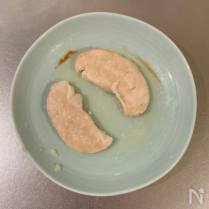 鶏ささみは太さで加熱時間が変わるので、足りなければ10~20秒ずつ追加してください。