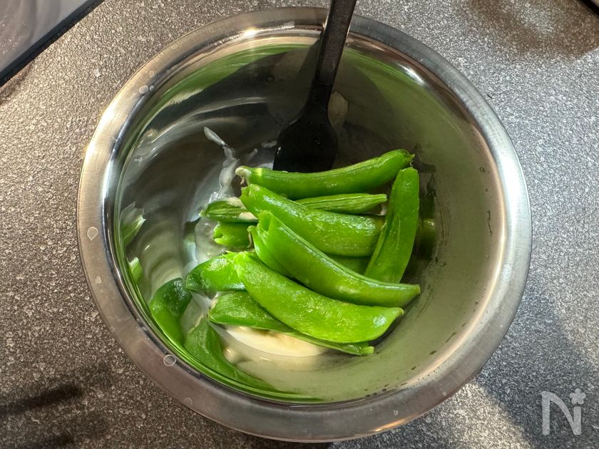 ピリッとおいしい♩《スナップエンドウの柚子胡椒マヨ和え》