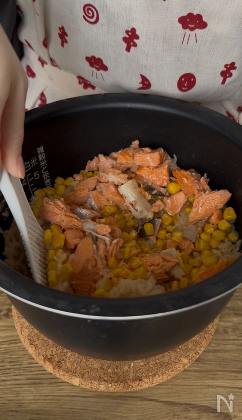 【炊飯器にお任せ!】秒でなくなる!鮭とコーンの炊き込みご飯