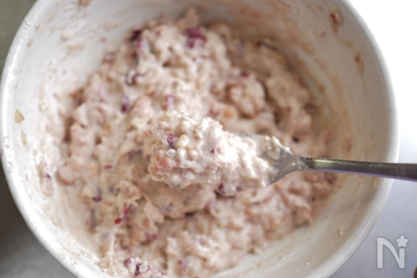 スプーンですくってモタっとしてくるまで小麦粉を追加する。