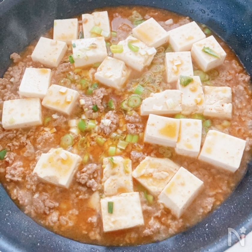 (3) 【A】と鶏がらスープを加え、煮立ったら、豆腐を加え、1~2分煮る。