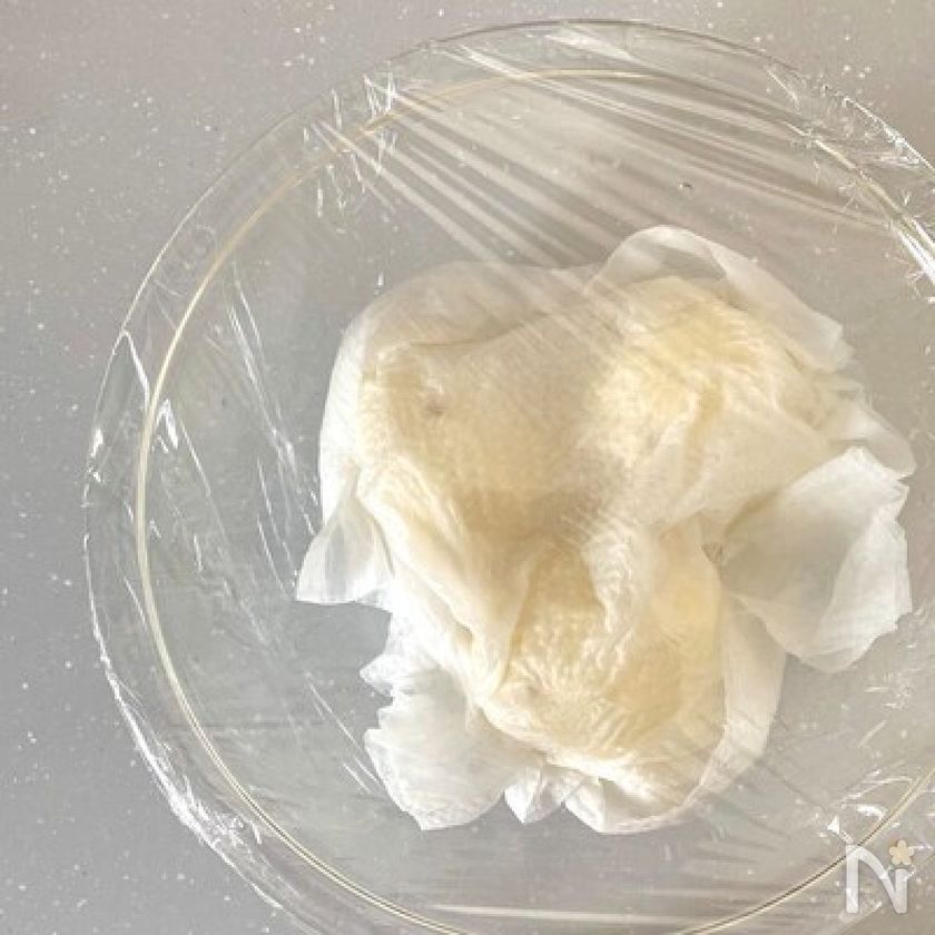 耐熱容器に入れ、上から濡れたキッチンペーパーをかぶせてふんわりとラップをし、レンジ500w5分加熱する