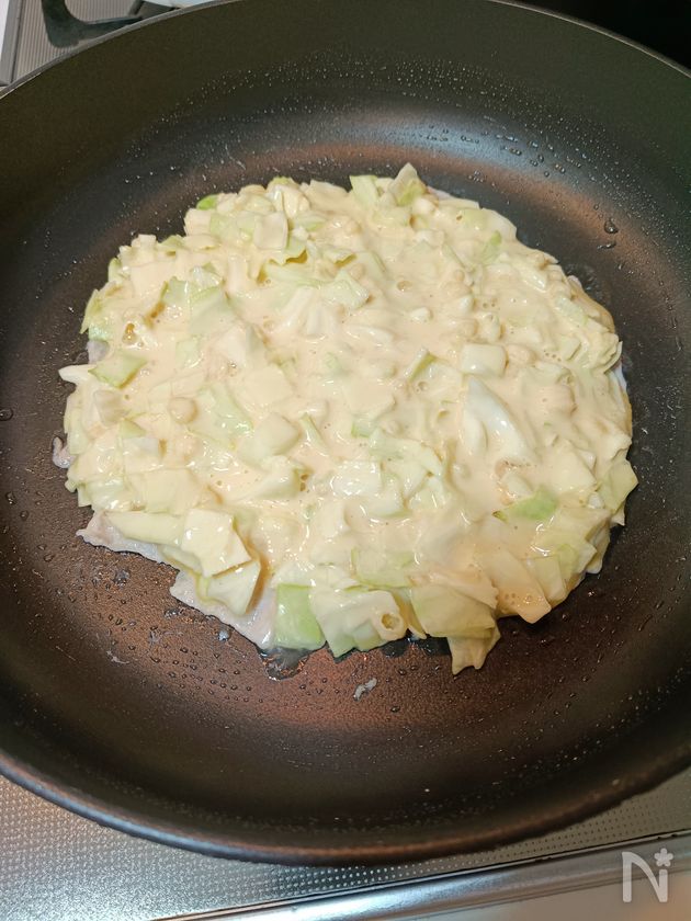 (7) 工程5〜6をくり返し、もう1枚焼く。