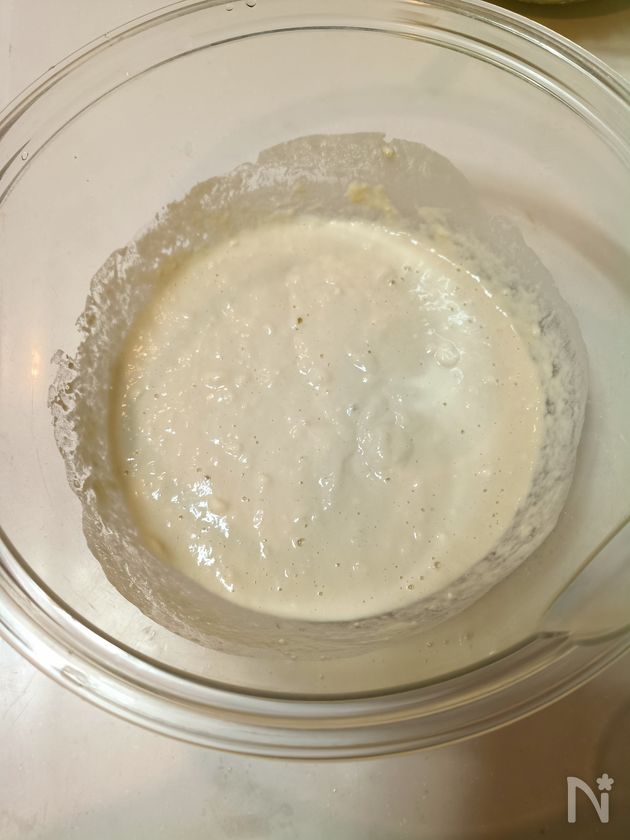 (2) 小麦粉と【A】を大きめなボールに混ぜ合わせる。