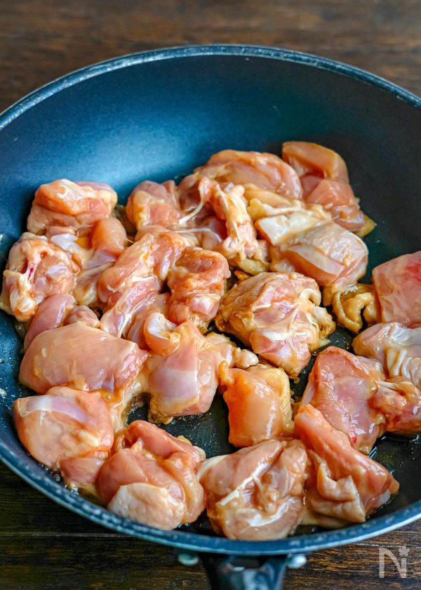 鶏肉はあまり大きく切らない方が時短になります。