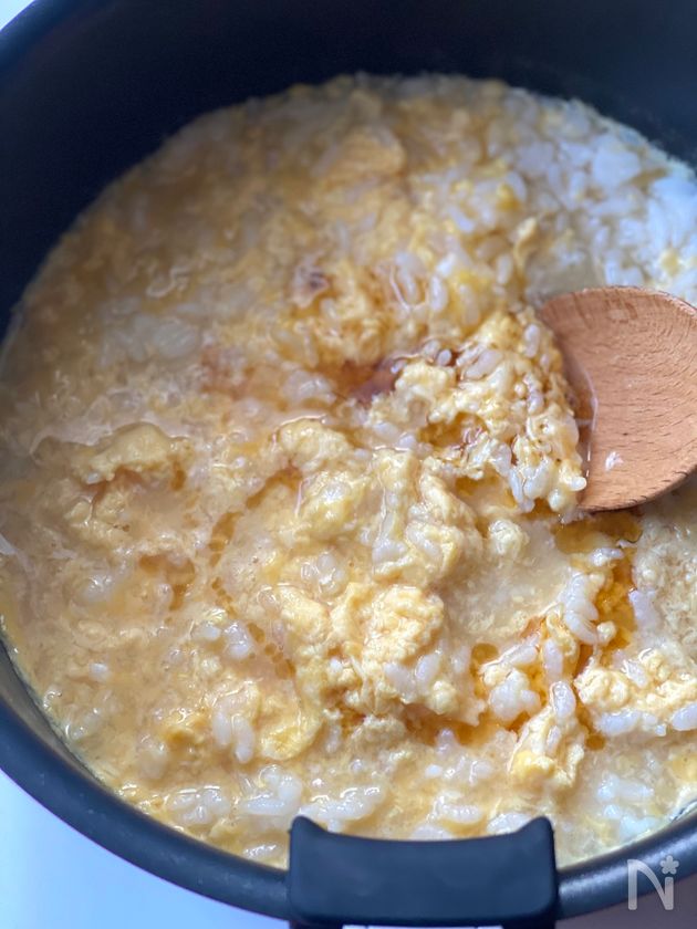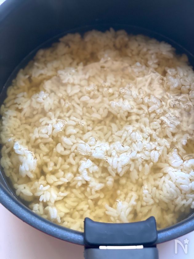 •米がどんどん水分を吸収するので、ごはんを入れたら一気に最後の工程まで時間をかけず進めます。