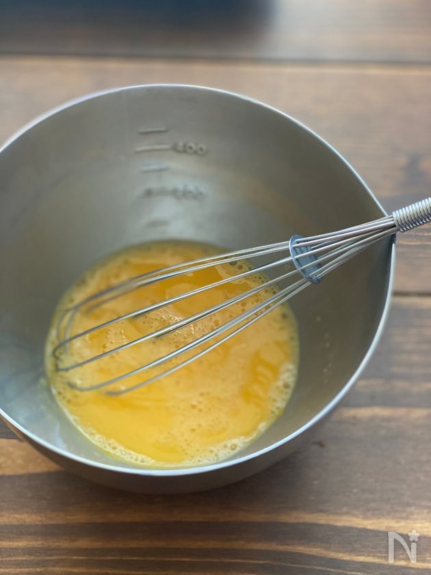 (3) 卵に8割火が通ったら火を止めごま油をたらす。