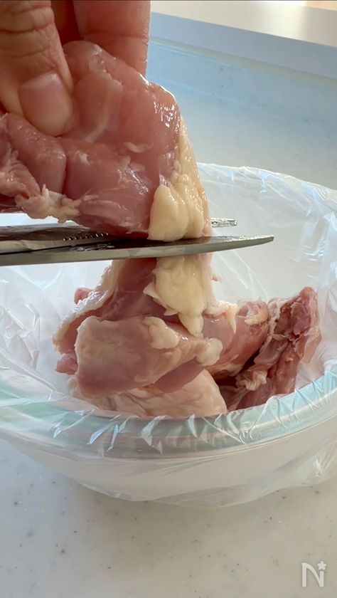(1) 鶏もも肉を一口大に切る。ポリ袋に入れ、片栗粉を加えて全体にまぶす。