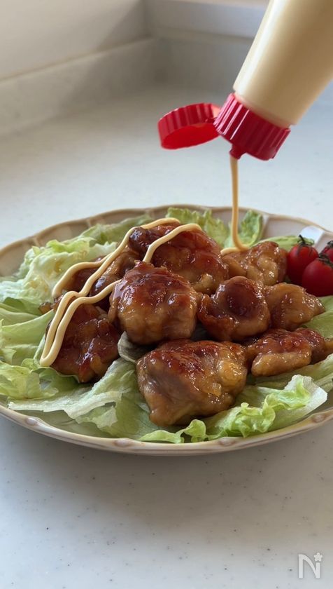 ・片栗粉をまぶすことで、照り焼きだれがしっかり絡んでツヤが出ます。