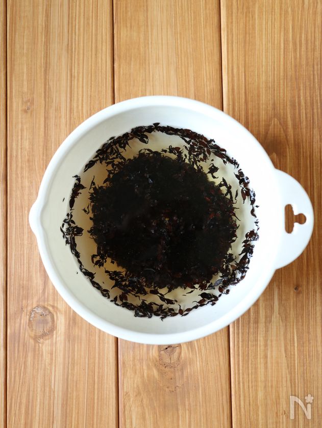 (下準備) 乾燥ひじきは水で戻す。
