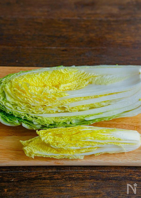 (1) 白菜は縦1/4等分に切り、小さい部分を外す。