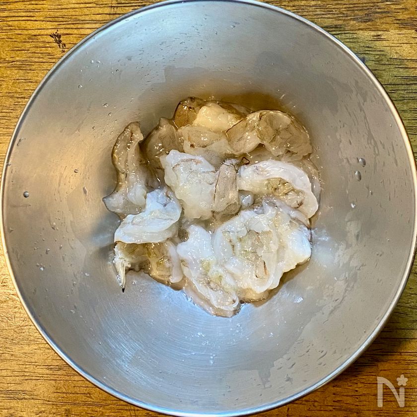 (下準備) バナメイえびは次のとおり下処理しておく。