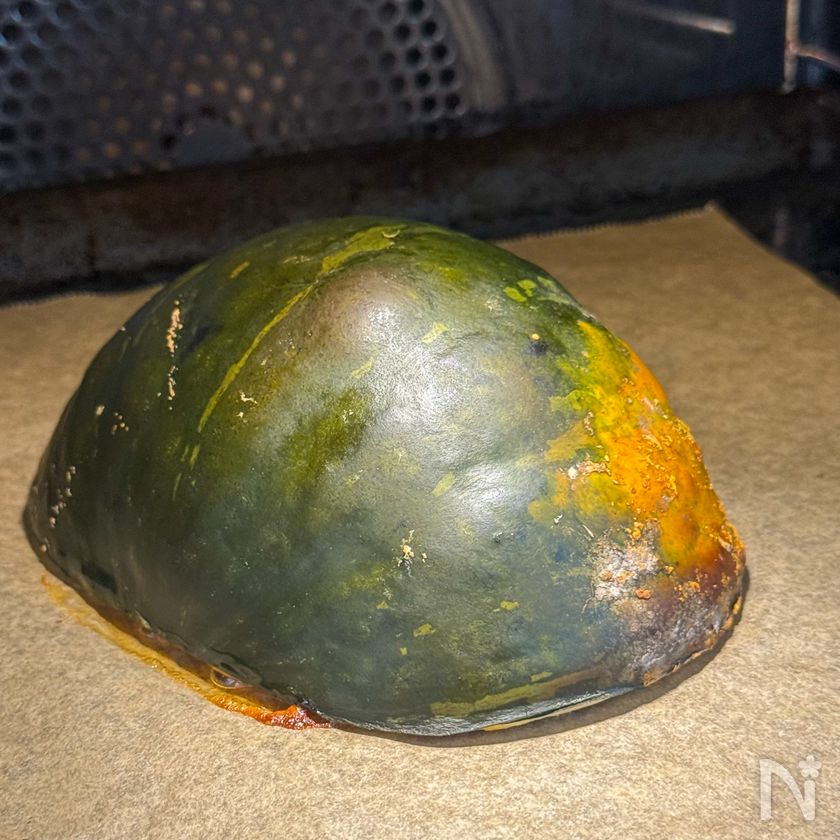 オーブンの天板に切り口を下にして置き、200℃に予熱したオーブンで約40分焼く。