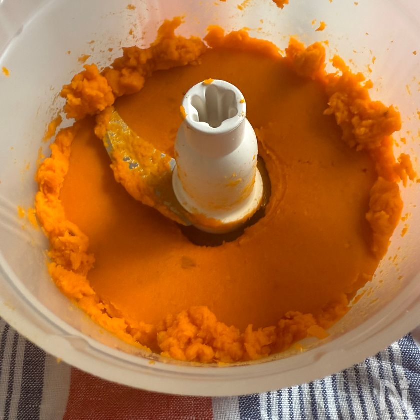 (3) ブレンダーにかけ、なめらかなピューレ状にする。