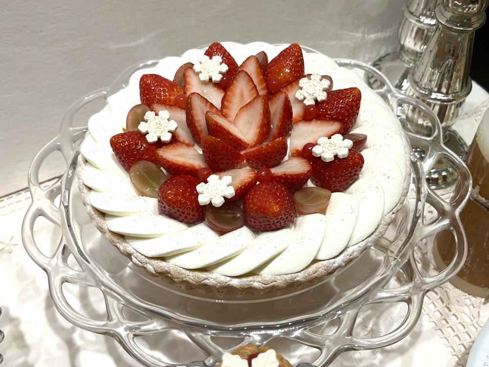 口どけなめらかなホワイトチョコ風味のカスタードに、フルーツリースタルトと雪の結晶のオーナメントが、聖なる夜を演出します。