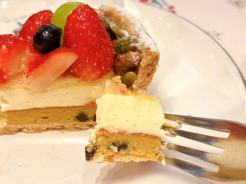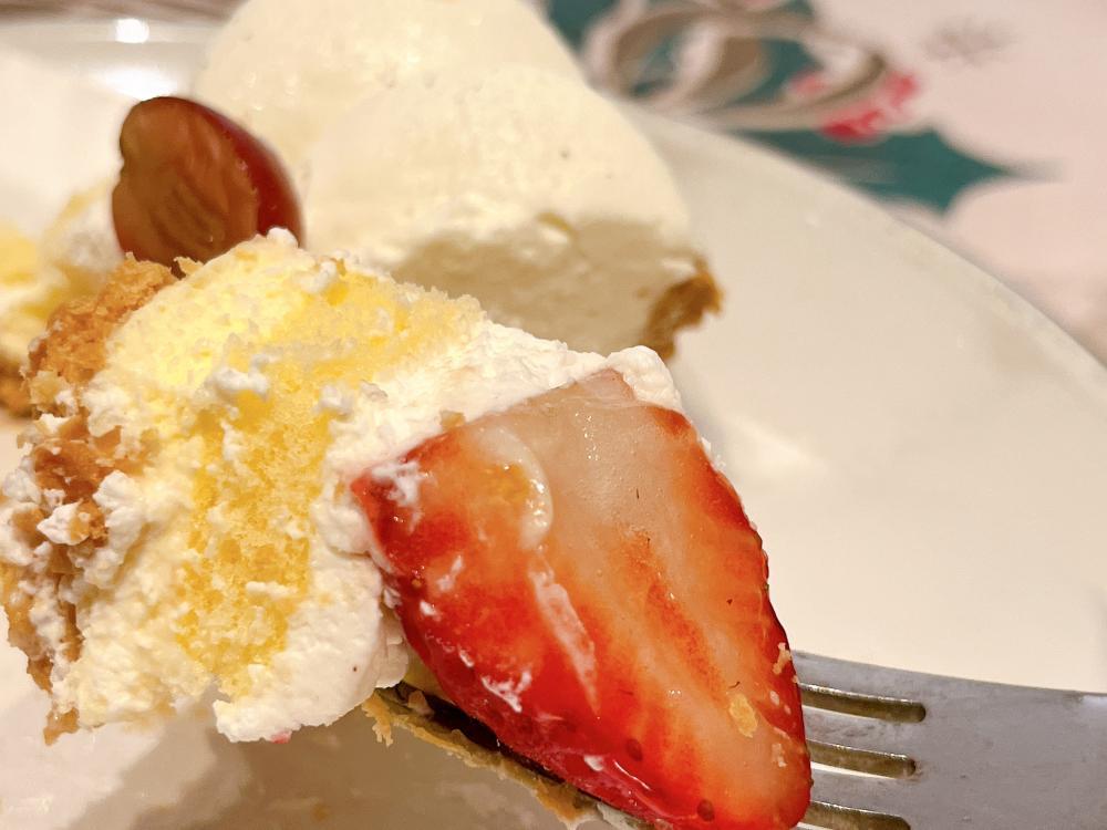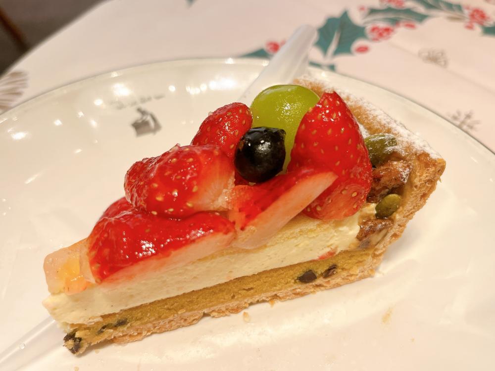 なめらかなくちどけとチーズの酸味を感じつつ、イチゴの甘さに癒される......。スポンジとの相性も良く、今回食べた4種類のなかで、一番クリスマス感を感じました。レアチーズケーキ好きさんには、このタルトを強くおすすめします。