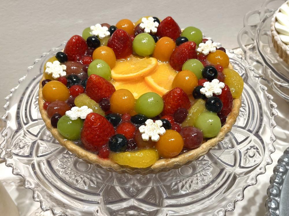 永遠を意味する"輪"をかたどったクリスマスリースのフルーツタルト。色とりどりのフルーツとシャインマスカットがたっぷりと乗っています。