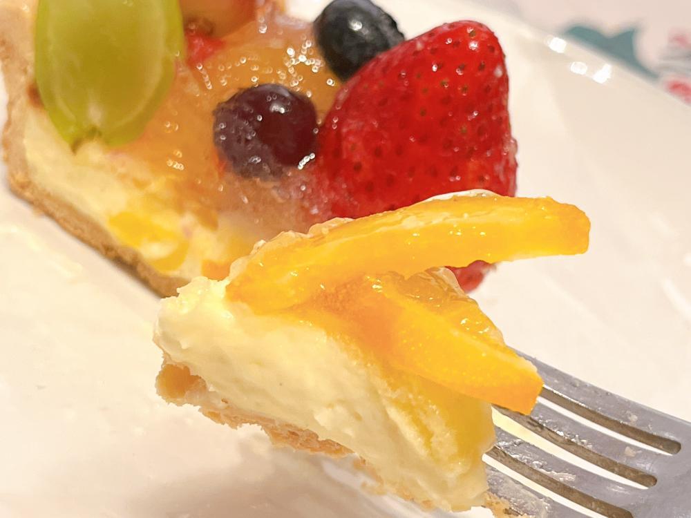どの部分を食べても違った魅力が楽しめるのは、フルーツがたっぷりの証。カスタードクリームがホワイトチョコ風味で、思いのほかさっぱりでフルーツとの相性は言わずもがな。