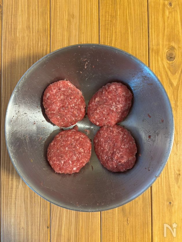 4等分にして2cm程の厚さの楕円型に成形する。