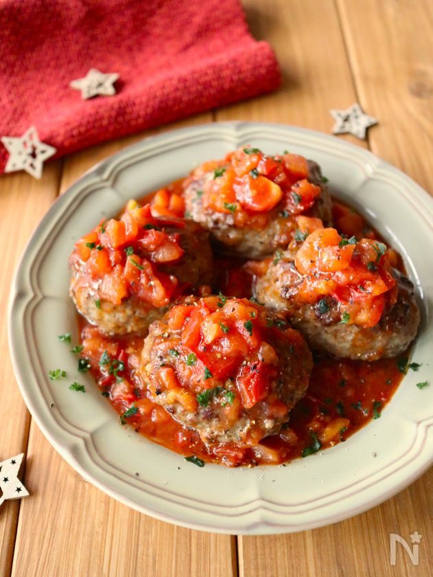 旨味閉じ込める!【ガーリックトマトハンバーグ】パン粉牛乳不要