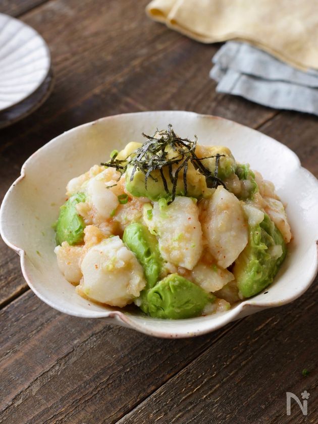 和風仕立ての【アボカドと長芋の明太子ポテサラ】
