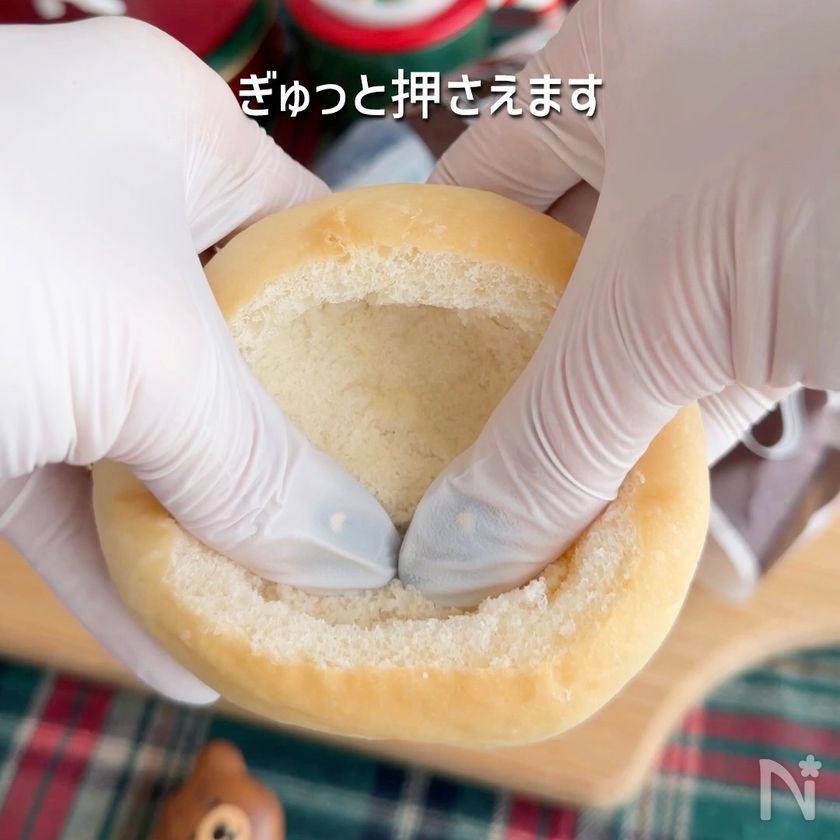 (3) 中央を押し込む。