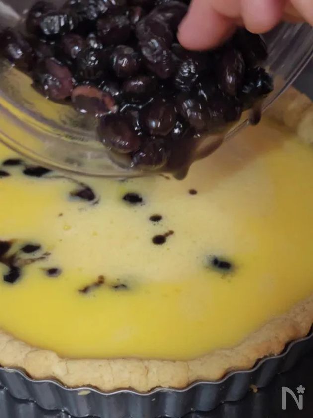 お節の黒豆の残りで!黒豆のエッグタルト