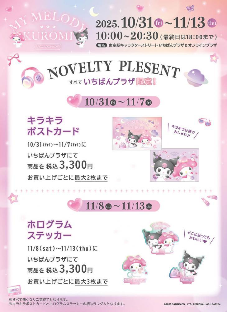 東京駅にマイメロディ&クロミの限定グッズが大集結!3300円以上の購入でポストカードかステッカーもらえるよ《31日スタート》