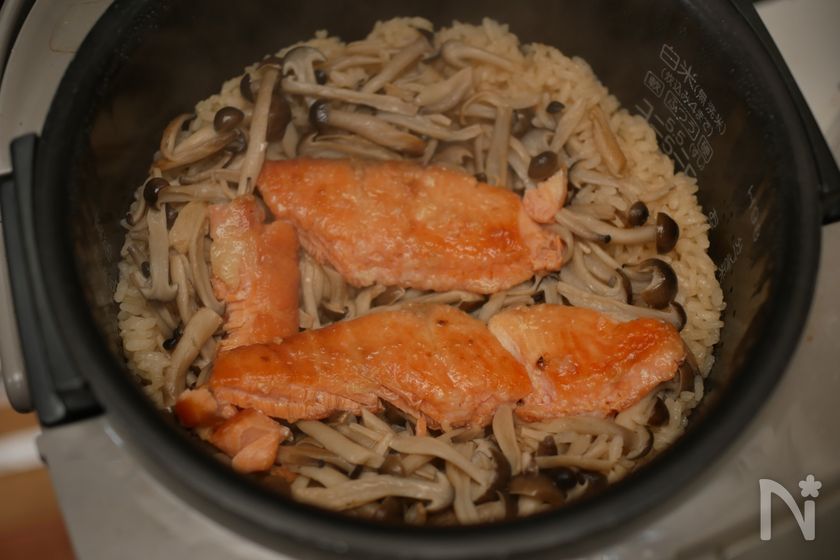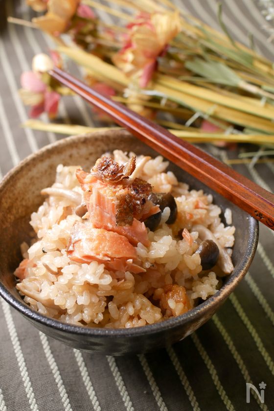 サクサク香ばしい!一味違う!鮭としめじの炊き込みご飯!