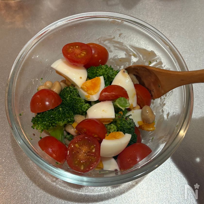 蒸し大豆とブロッコリーのデリ風たまごサラダ