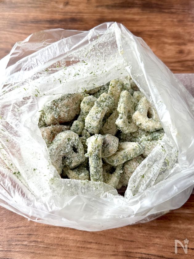 ◎小麦粉をもみ込んでから片栗粉をまぶすと、水分が出にくくなり、カリッと揚がります。