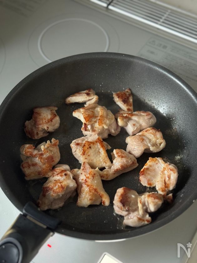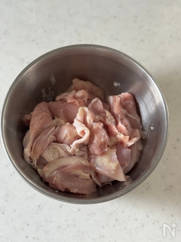 (1) 鶏もも肉はひと口大に切り、【A】をもみ込む。