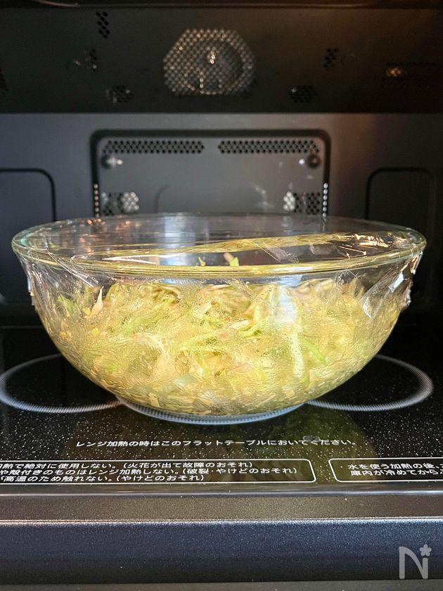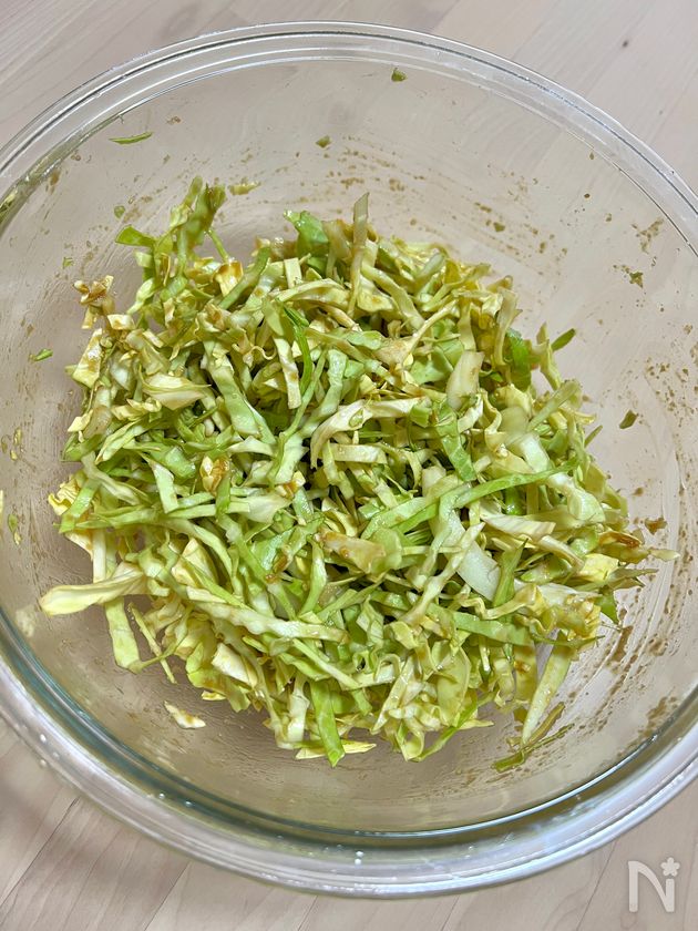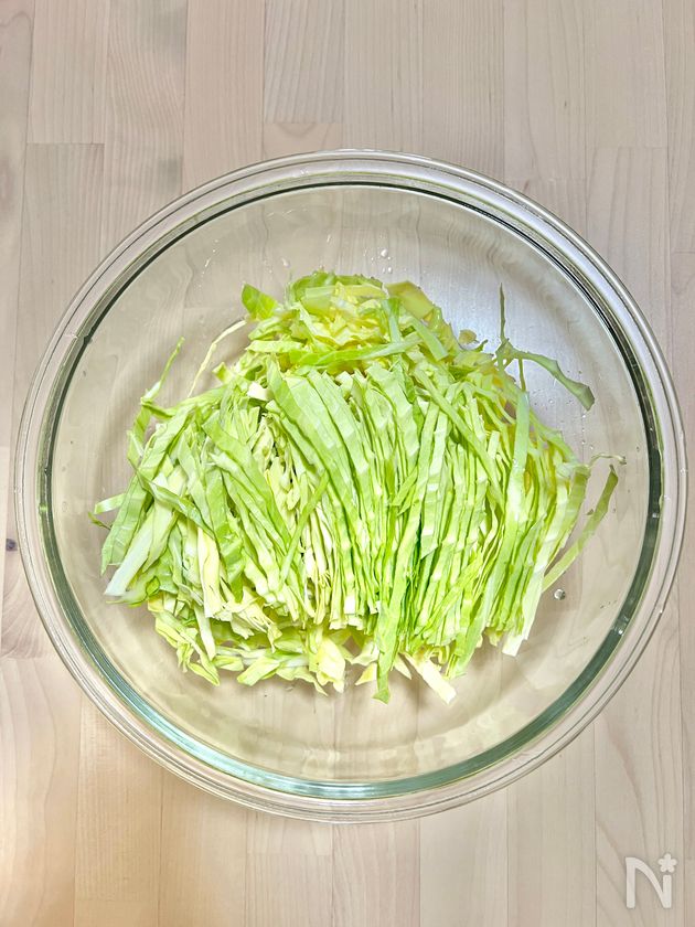 (※洗ったきゃべつはしっかりと水気をきってください)