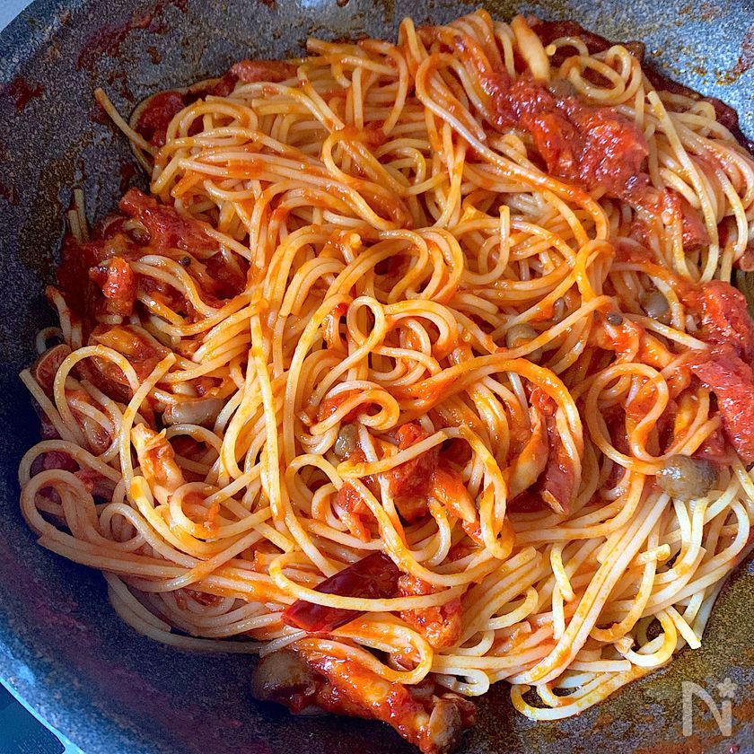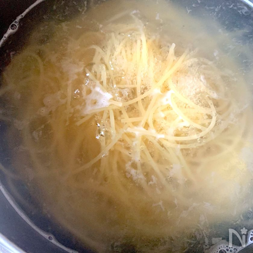 ■スパゲッティ自体に塩味をつける作り方です。湯1リットルに対し塩15gが目安。ゆでる際の塩を少なくした場合は、ソースに塩を少々加えて調整してください。