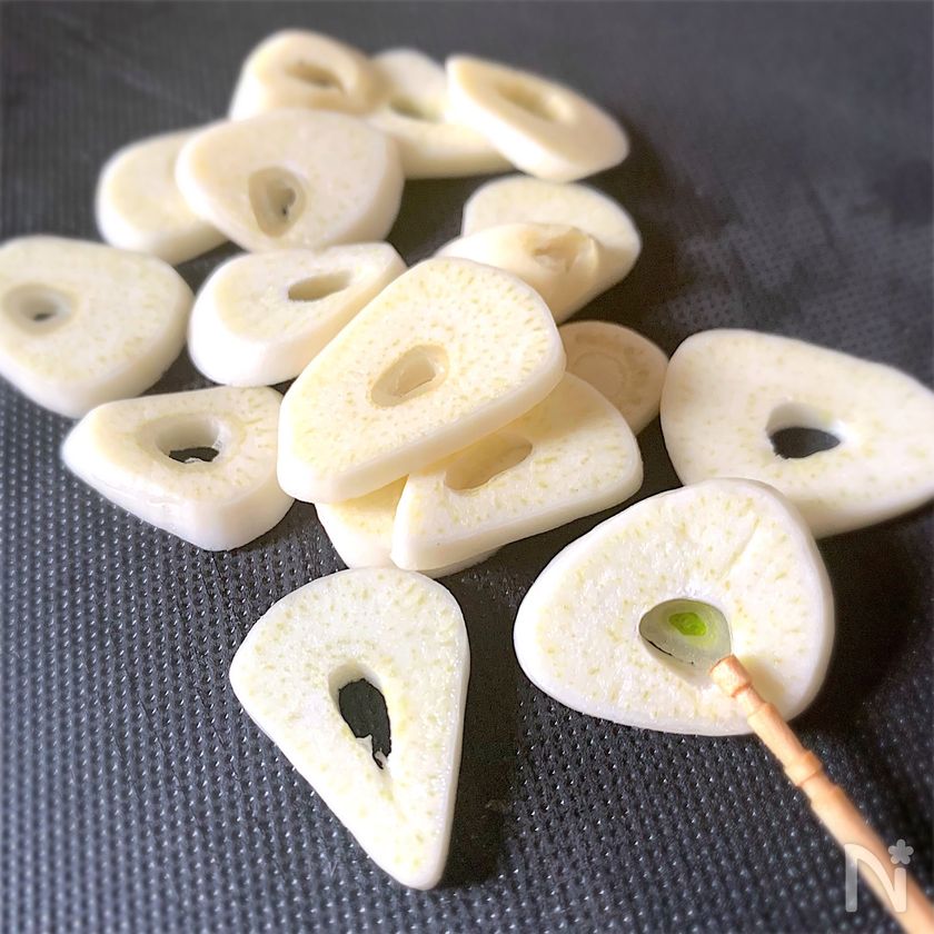 (下準備) ・にんにく…薄切りにし、真ん中の芯を爪楊枝で抜く。
