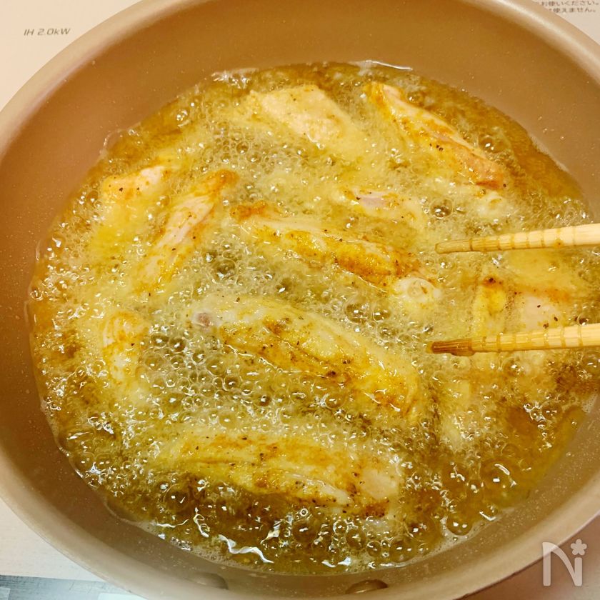 【カレーの香りで食欲そそる♡】鶏手羽のにんにくカレー揚げ